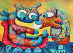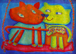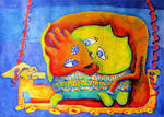 2009twee fantasie dieren geven elkaar een knuffel op de schommel