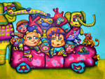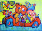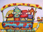 2010De auto vol met lieve vrolijke beesten gaan op stap