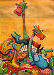 2009fantasie dieren op schommel die eruit ziet als een trein ,humor