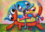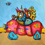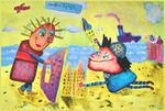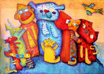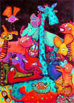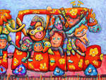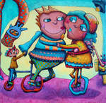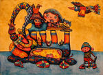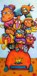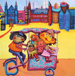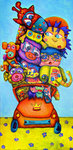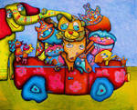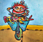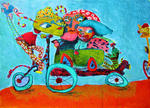 2010Denhaag, wereldvrede, bakfiets ,als je met allerlei nationaliteiten één bakfiets kan rijden dan is er wereldvrede. De haagse tieten ,de vulpen, keukenrol ijspalijs vredes paleis ,centraal station ,binnenhof ,zijn haagsche gebouwen . Dit schilderij heeft de 2 de plaats gewonnen in de publieksprijs van de Haagse schilderkunst Arward van 2009.
