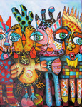 vrolijke schilderijen met humor ,meestal met een verhaal,vaak komen mijn vrienden en familie erin voor .Ik hou van alle kleuren.