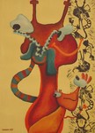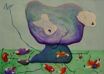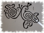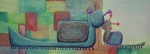 2007hier heb ik geprobeerd een tekening van een lino die ik had gemaakt om te zetten in een schilderij dus een dubbele techniek